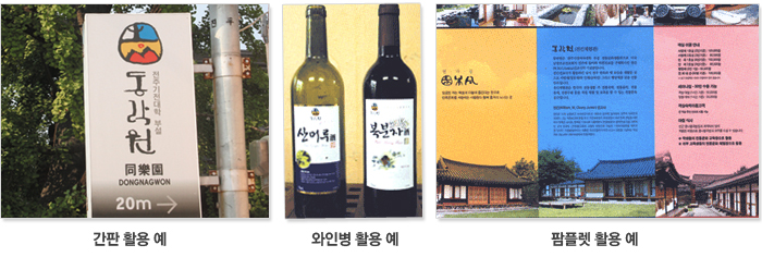 동락원은 전주 한옥마을에서도 손꼽을 만큼 아름다운 마당을 가지고 있다. 그 마당에서 풀과 나무가 활기차게 자라고 동산에는 해와달이뜨는데 그 속에서 온갖 시름 잊고 사람들과 더불어 문화와 예술의 향기를 나눌 수 있는 곳이라 생각하여 '園'자를 생각하였고 '園'자의 금문형태에서 이미지를 아꿀오 냈다.